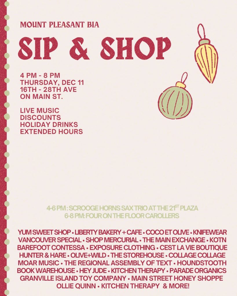 We’re joining the Mount Pleasant BIA Sip & Shop on December 11 from 4–8 PM, and we’d love to have...