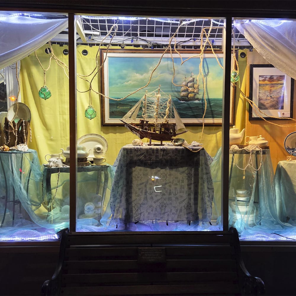Our Treasure Cottage window display is inspired by the journey, nautical touches, timeless pieces, and little finds waiting to be discovered. Come take a look and see where it takes you